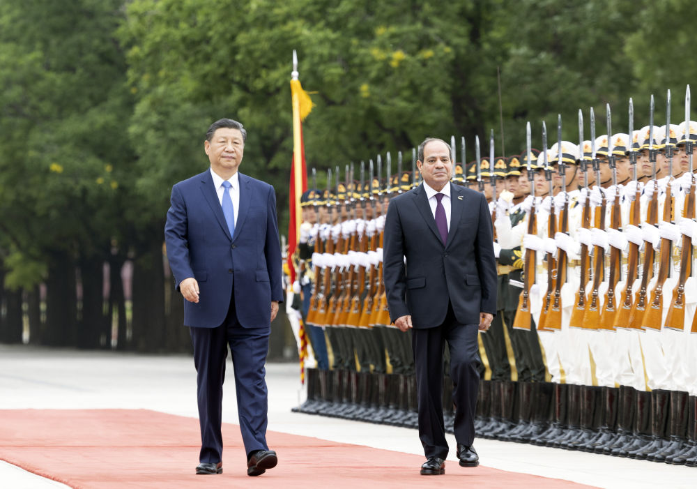 5月29日下午,國(guó)家主席習(xí)近平在北京人民大會(huì)堂同來華出席中國(guó)-阿拉伯國(guó)家合作論壇第十屆部長(zhǎng)級(jí)會(huì)議開幕式并進(jìn)行國(guó)事訪問的埃及總統(tǒng)塞西舉行會(huì)談。這是會(huì)談前,習(xí)近平在人民大會(huì)堂東門外廣場(chǎng)為塞西舉行歡迎儀式。新華社記者 丁海濤 攝
