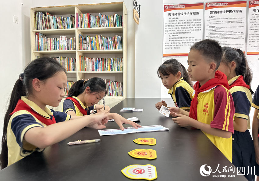 5月31日,南充市嘉陵區(qū)之江小學(xué)“美習(xí)銀行”,學(xué)生們?cè)趦?chǔ)存“美習(xí)幣”。人民網(wǎng)記者 王波攝