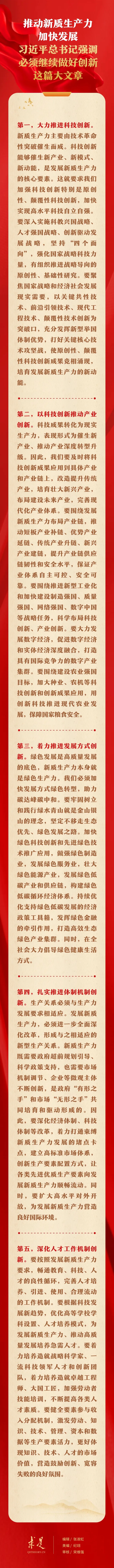 “新質生產(chǎn)力的顯著特點是創(chuàng)新,既包括技術和業(yè)態(tài)模式層面的創(chuàng)新,也包括管理和制度層面的創(chuàng)新。必須繼續(xù)做好創(chuàng)新這篇大文章,推動新質生產(chǎn)力加快發(fā)展?!?/p>