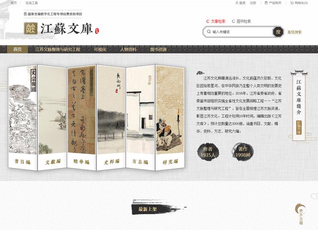 《江蘇文庫》數(shù)據(jù)庫軟件平臺首頁截圖