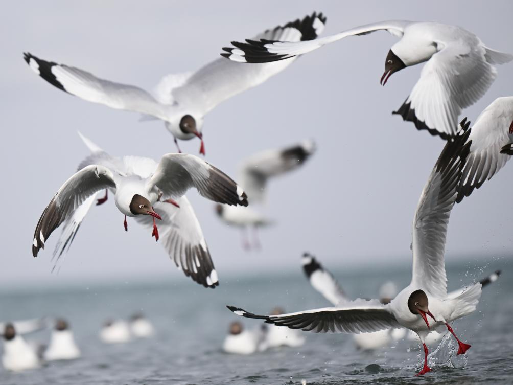 這是2023年4月13日在青海湖拍攝的棕頭鷗。新華社記者 張龍 攝