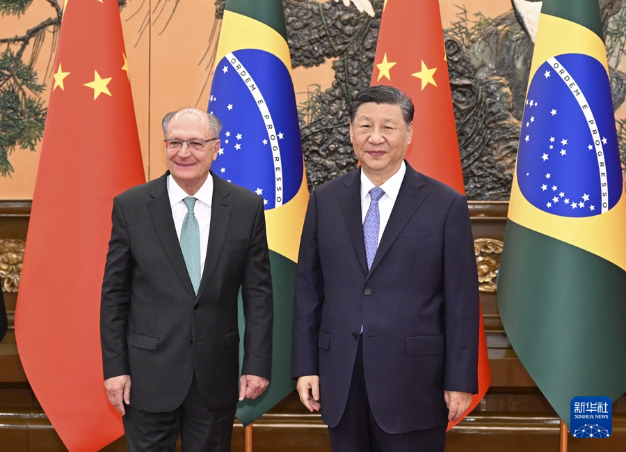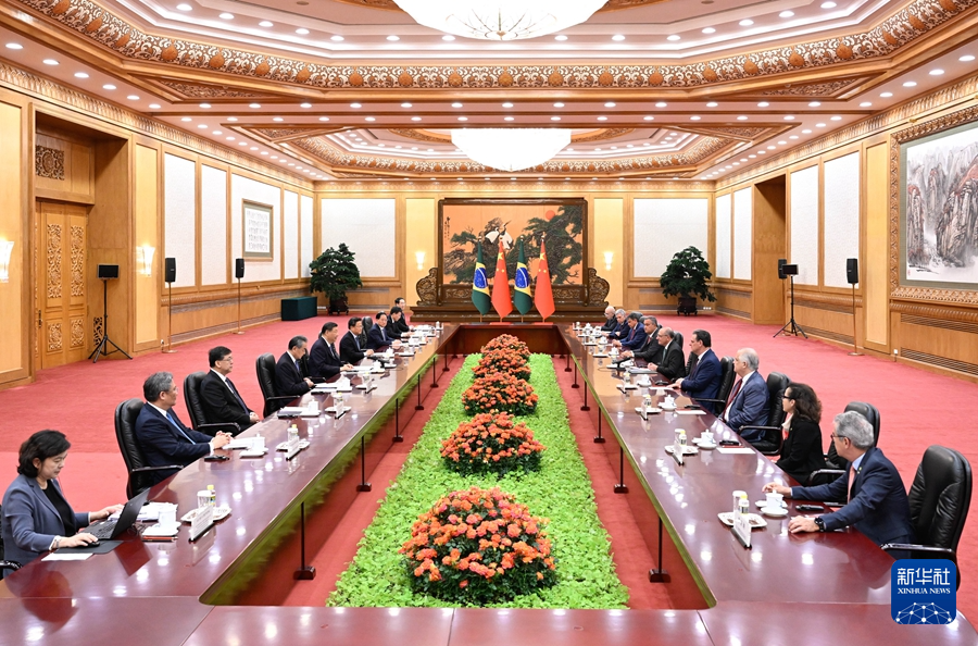 6月7日下午,國家主席習近平在北京人民大會堂會見來華正式訪問的巴西副總統(tǒng)阿爾克明。新華社記者 申宏 攝