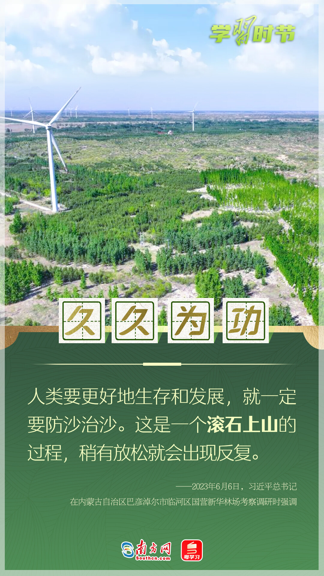 今年6月17日是第30個世界防治荒漠化與干旱日,今年的國際主題是“為了土地聯(lián)合起來:我們的遺產(chǎn)、我們的未來”,我國的主題為“打好‘三北’工程攻堅戰(zhàn) 筑牢北方生態(tài)安全屏障”。