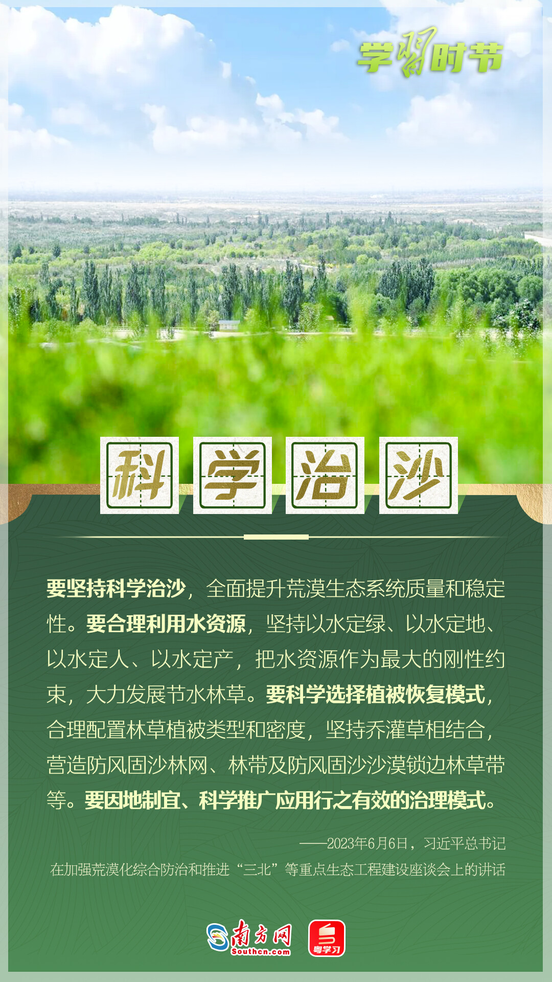 習近平總書記高度重視荒漠化防治工作,深入多地調研,多次作出重要指示。在習近平生態(tài)文明思想指引下,中國防治荒漠化成效顯著。讓我們一起從總書記的重要論述里學習領悟,堅定走好荒漠化防治之路。