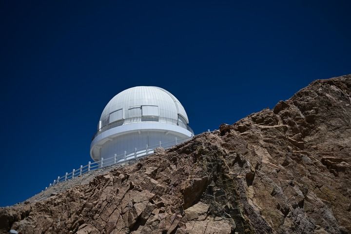 這是在青海省海西蒙古族藏族自治州茫崖市冷湖鎮(zhèn)賽什騰山拍攝的中國科學技術大學和中國科學院紫金山天文臺聯(lián)合研制的大視場光學成像望遠鏡——墨子巡天望遠鏡(2024年4月20日攝)。