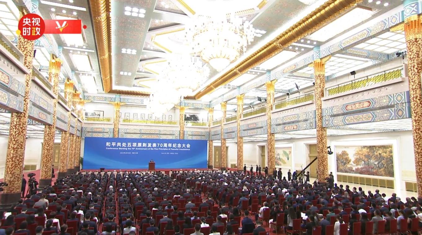 6月28日上午,和平共處五項(xiàng)原則發(fā)表70周年紀(jì)念大會(huì)在北京人民大會(huì)堂隆重舉行。國(guó)家主席習(xí)近平出席紀(jì)念大會(huì)并發(fā)表題為《弘揚(yáng)和平共處五項(xiàng)原則,攜手構(gòu)建人類命運(yùn)共同體》的重要講話。