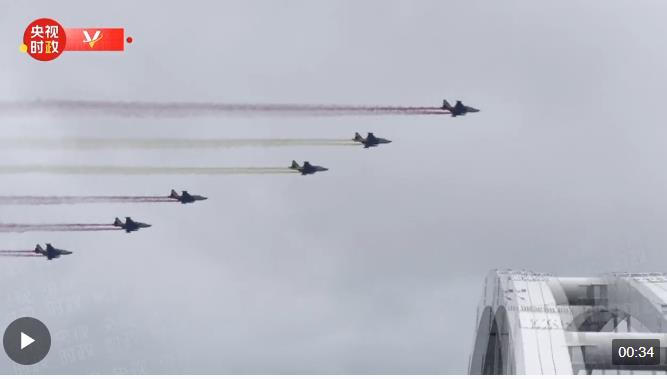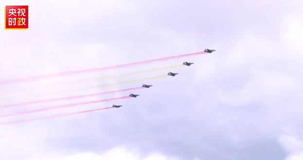 習(xí)近平主席車(chē)隊(duì)抵達(dá)哈薩克斯坦總統(tǒng)府時(shí),六架哈薩克斯坦空軍戰(zhàn)機(jī)從總統(tǒng)府上空飛過(guò),拉出象征中國(guó)國(guó)旗的紅黃色彩帶,以最高禮儀歡迎習(xí)近平主席。