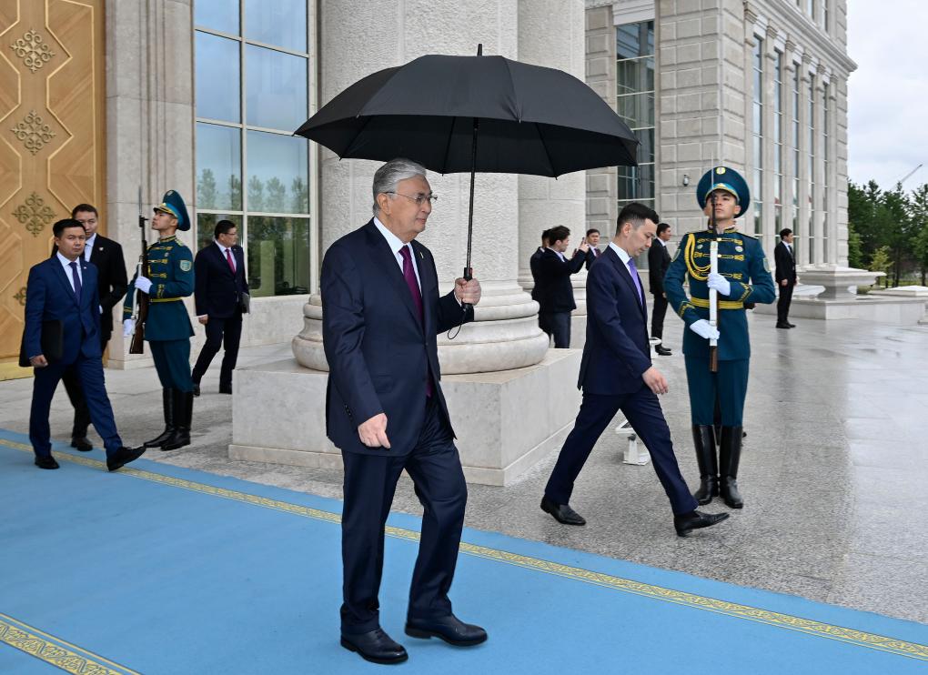 托卡耶夫?yàn)榱?xí)近平舉行隆重歡迎儀式。總統(tǒng)府大廳氣勢(shì)恢宏,禮兵威武挺拔。兩國(guó)元首分別同對(duì)方陪同人員一一握手致意。兩國(guó)元首登上檢閱臺(tái),軍樂(lè)團(tuán)奏中哈兩國(guó)國(guó)歌。習(xí)近平在托卡耶夫陪同下檢閱儀仗隊(duì)。