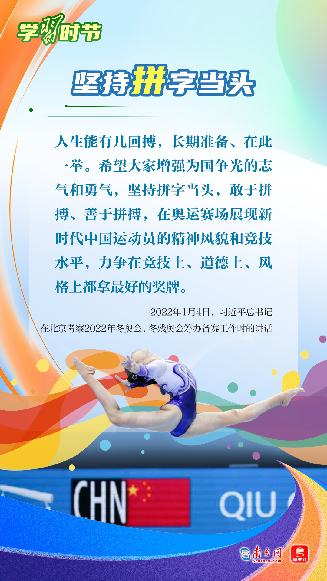 “我們不以勝負(fù)論英雄,同時(shí)英雄就要敢于爭先、敢于爭第一。”習(xí)近平總書記曾在不同場合論述奧林匹克精神,深刻闡明了勝與負(fù)、成與敗的辯證關(guān)系,對(duì)奧林匹克“更快、更高、更強(qiáng)——更團(tuán)結(jié)”的格言進(jìn)行詮釋。讓我們一同學(xué)習(xí)習(xí)近平總書記對(duì)奧林匹克精神的重要論述,心懷夢想、奮勇拼搏,攜手走向美好明天。