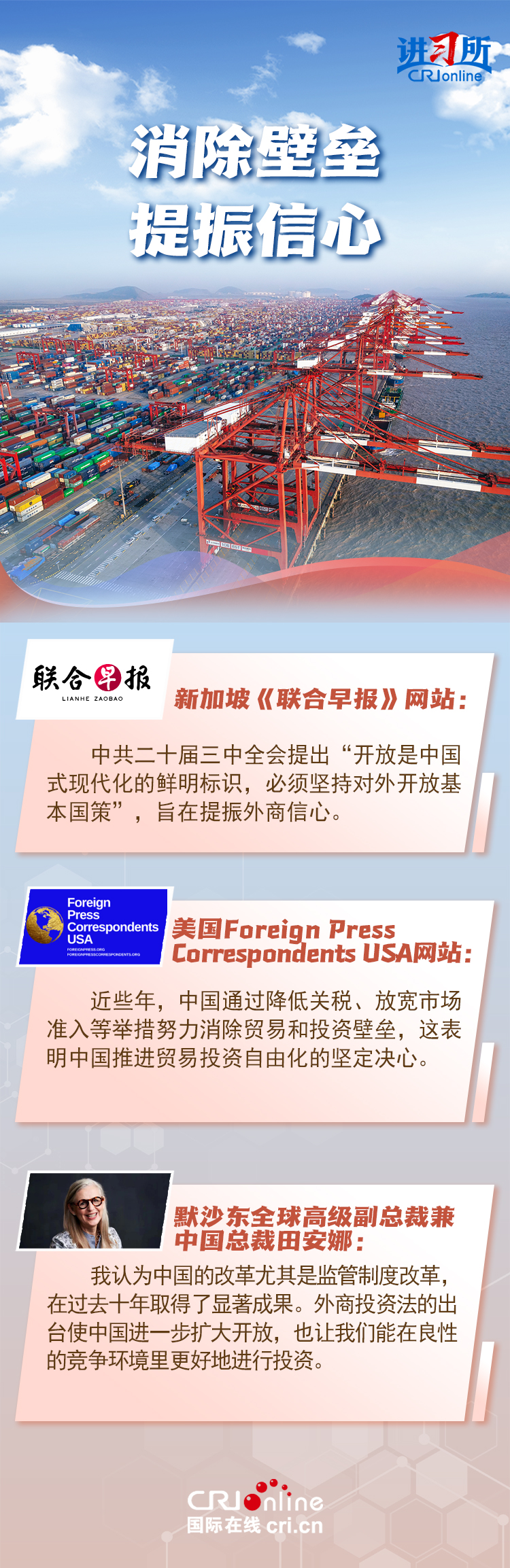 中共二十屆三中全會(huì)審議通過(guò)的《中共中央關(guān)于進(jìn)一步全面深化改革、推進(jìn)中國(guó)式現(xiàn)代化的決定》強(qiáng)調(diào),必須堅(jiān)持對(duì)外開(kāi)放基本國(guó)策,堅(jiān)持以開(kāi)放促改革,建設(shè)更高水平開(kāi)放型經(jīng)濟(jì)新體制,并對(duì)完善高水平對(duì)外開(kāi)放體制機(jī)制提出重要改革措施。