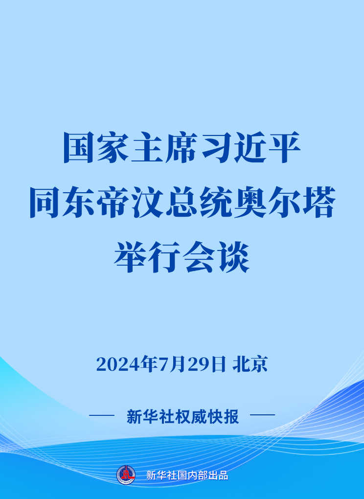 7月29日上午,國家主席習(xí)近平在北京人民大會堂同來華進行國事訪問的東帝汶總統(tǒng)奧爾塔舉行會談。