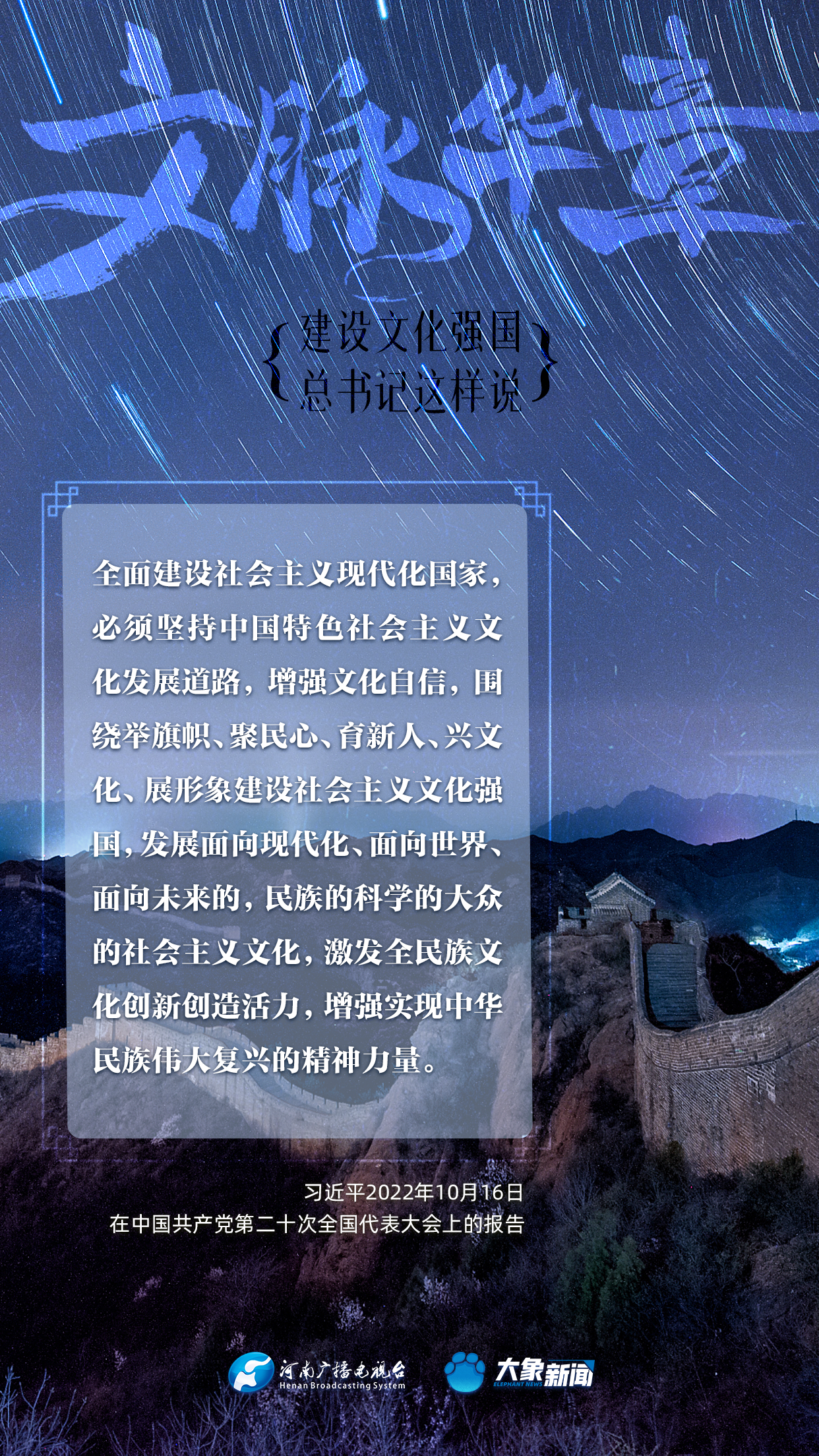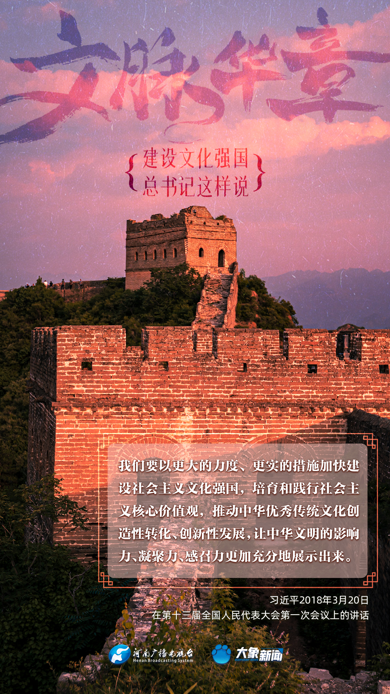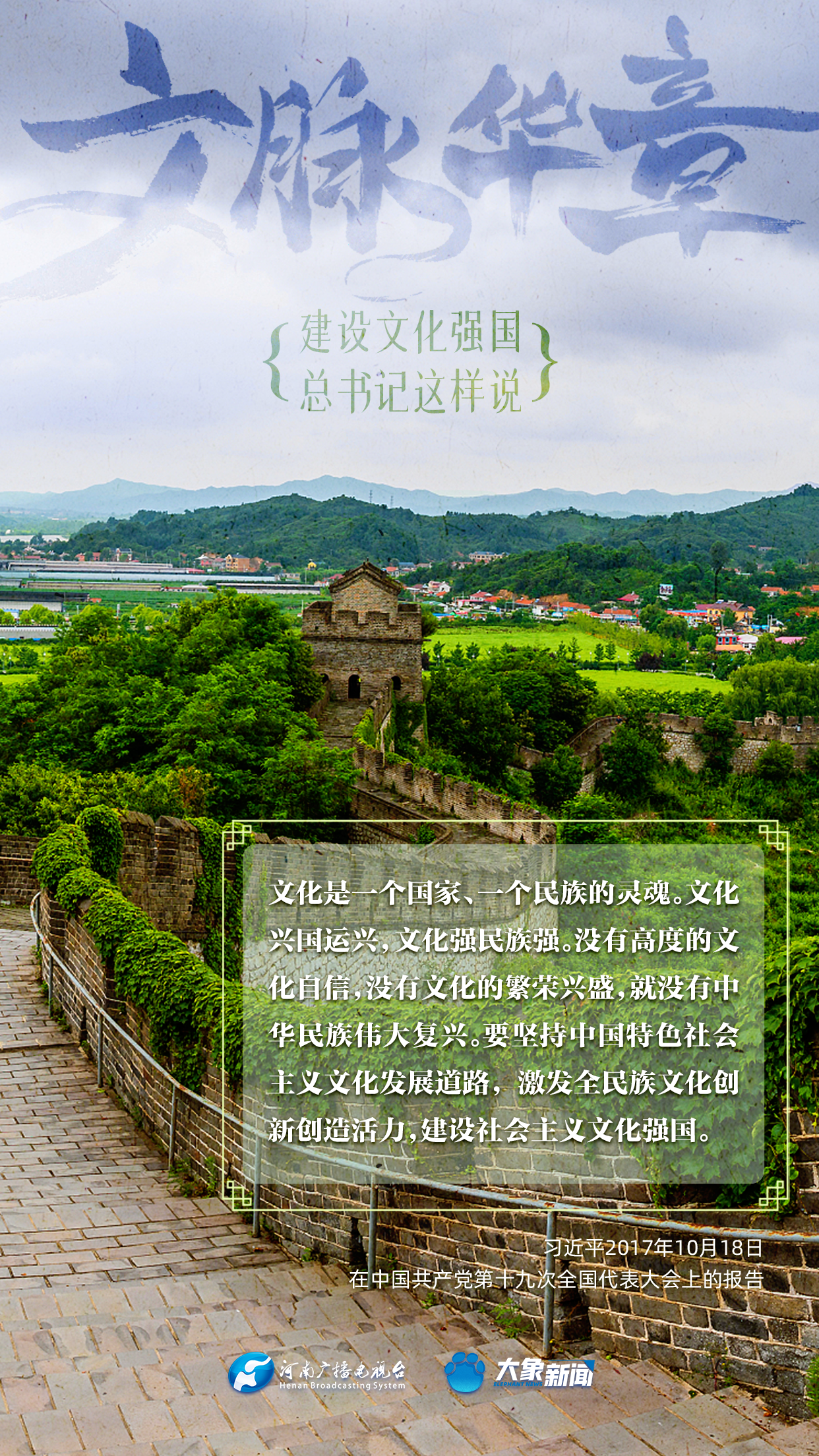 黨的十八大以來,習近平總書記站在全局和戰(zhàn)略高度,就建設社會主義文化強國提出一系列新思想新觀點新論斷,為我們堅定文化自信,堅持中國特色社會主義文化發(fā)展道路,提供了指引。大象新聞與您一起學習、領悟。