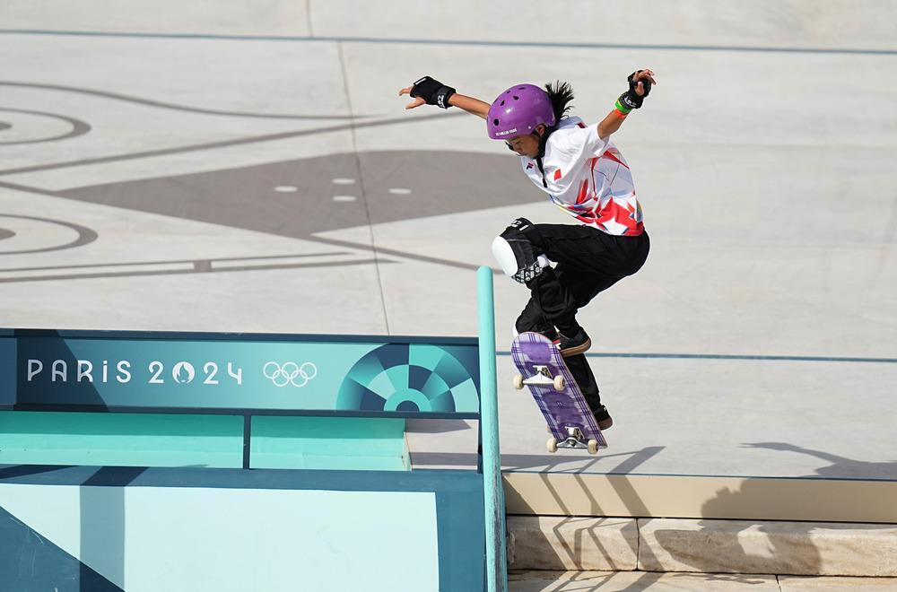 中國(guó)選手亮相巴黎奧運(yùn)會(huì)滑板比賽 圖片來(lái)源:新華社