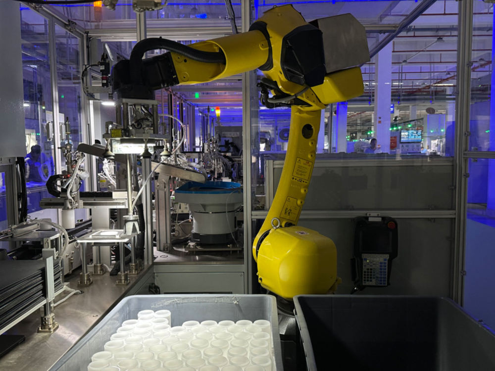 南安一家衛(wèi)浴企業(yè)生產(chǎn)線上,機(jī)械臂正在抓取過(guò)濾器零件。新華社記者 龐夢(mèng)霞 攝