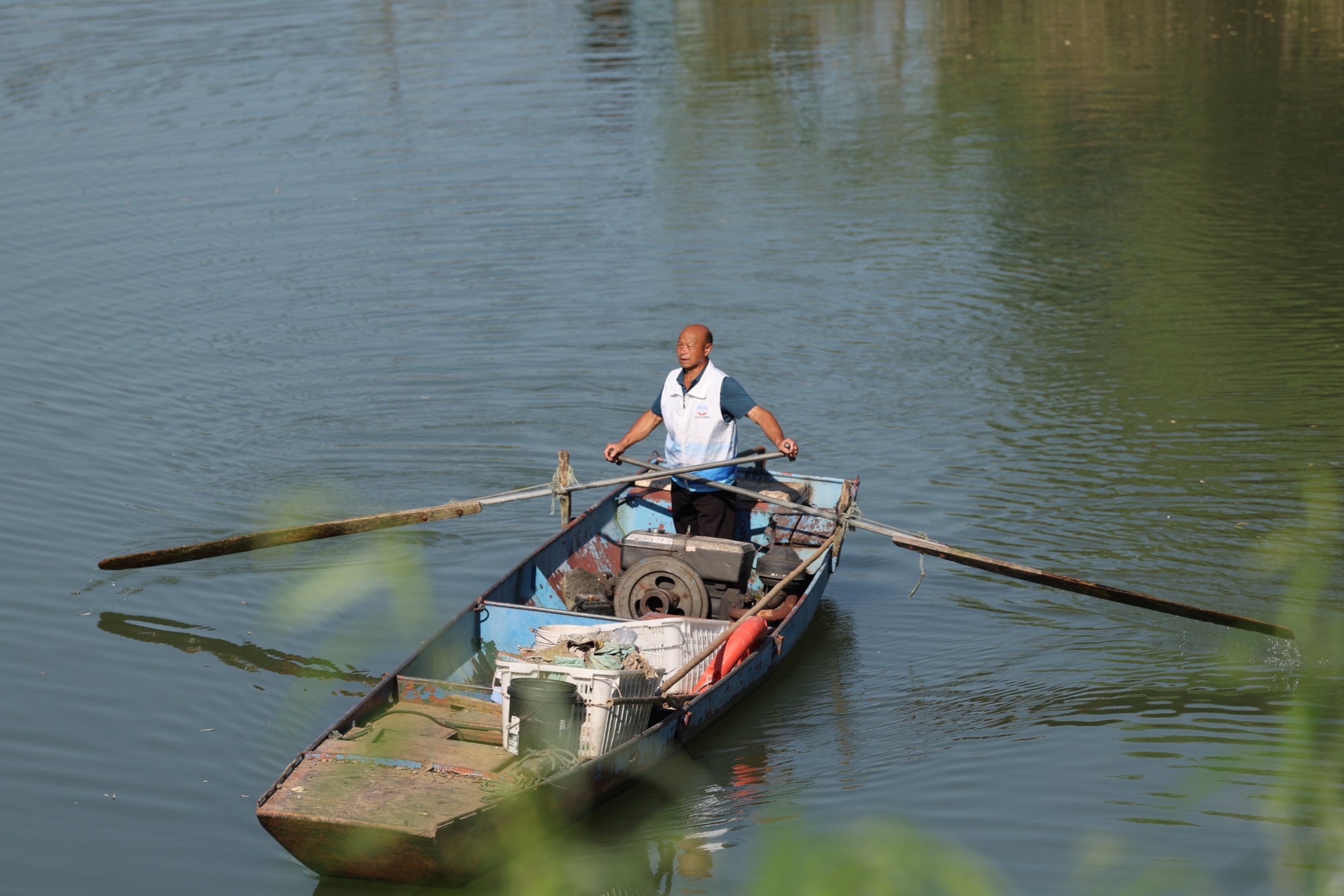 2020年,長(zhǎng)江流域重點(diǎn)水域“十年禁漁”全面啟動(dòng),老蔣積極響應(yīng),主動(dòng)上交跟了自己半輩子的9條漁船。后來(lái),為了發(fā)揮他熟悉水域、水性好的特長(zhǎng),當(dāng)?shù)卣疄樗渲昧艘粭l“守井衛(wèi)士”船,用于巡江清漂和水上救援。