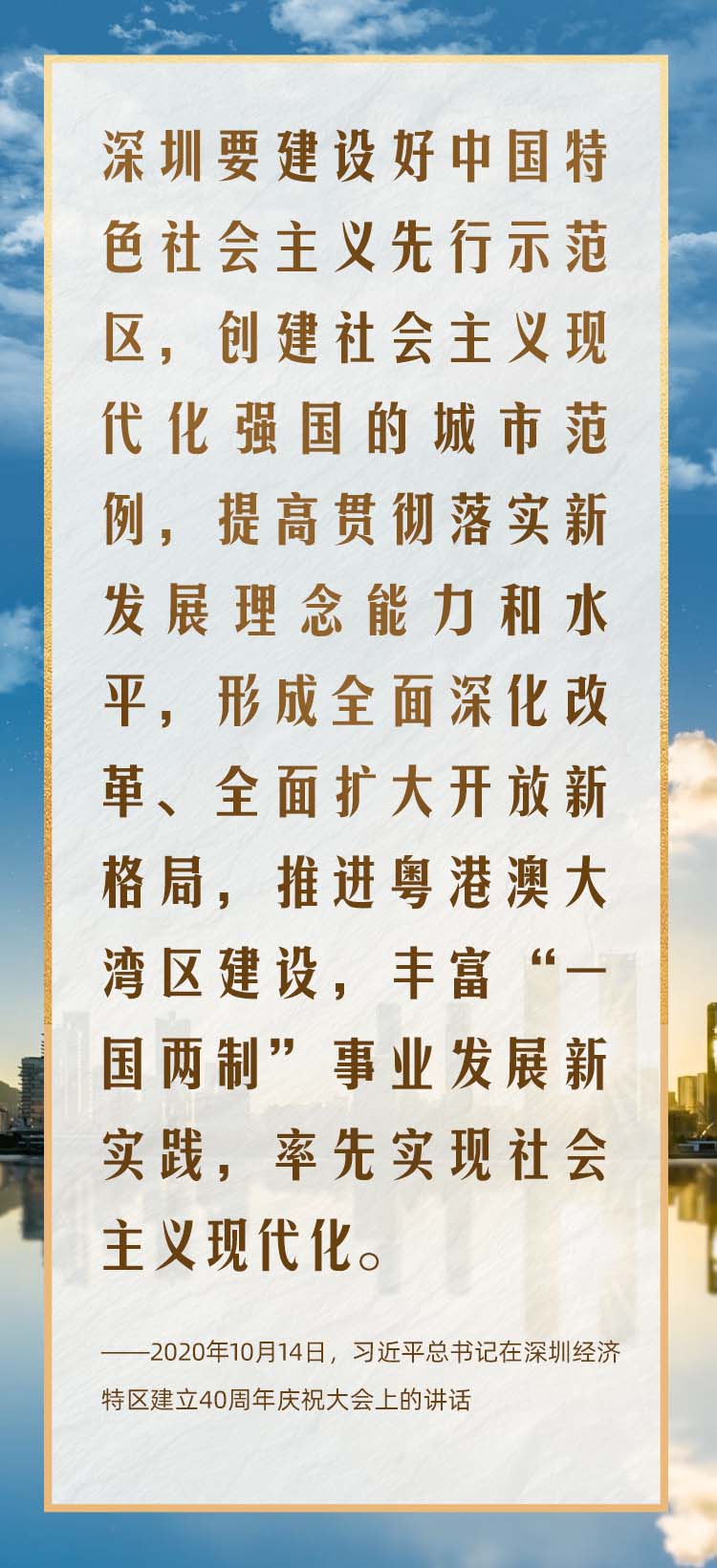 2020年10月,在慶祝深圳經(jīng)濟(jì)特區(qū)建立40周年之際,習(xí)近平總書(shū)記又一次來(lái)到這里,出席慶祝大會(huì),強(qiáng)調(diào)改革不停頓、開(kāi)放不止步,在更高起點(diǎn)上推進(jìn)改革開(kāi)放,推動(dòng)經(jīng)濟(jì)特區(qū)工作開(kāi)創(chuàng)新局面。