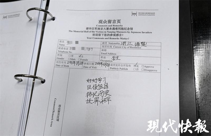 “好好學習,回報祖國”“吾輩當自強”“振興中華,責任在我們這一代”……暑假進入尾聲,侵華日軍南京大屠殺遇難同胞紀念館觀眾隊伍里,孩子們的身影依舊不少。在紀念館留言簿上,他們用稚嫩的筆跡留下一句句和平心聲。