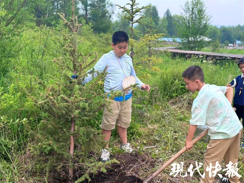 這樣的美麗風景讓第一次來到大草原的周云昊很興奮?!拔覀儚漠?shù)亓私獾?,這是一代又一代人努力的結果,讓我們也深切感受到生態(tài)保護的重要性?!毖袑W途中,周云昊和小伙伴們還專門在當?shù)亓謭龇N下一棵樹。“希望它能健康長大,成為守護綠色草原的小衛(wèi)士?!?/p>