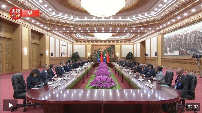 9月2日下午,國家主席習(xí)近平在北京人民大會堂同來華出席中非合作論壇峰會并進行國事訪問的南非總統(tǒng)拉馬福薩舉行會談。