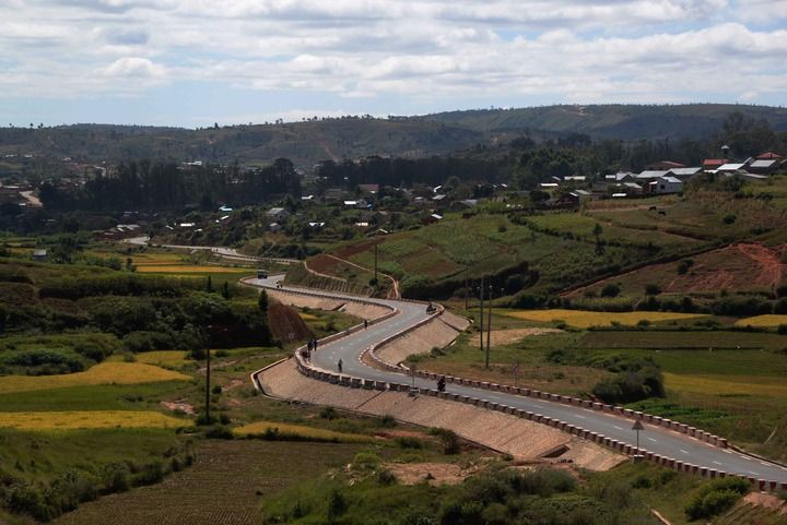 這是2022年5月3日在馬達(dá)加斯加首都塔那那利佛郊區(qū)拍攝的由中國(guó)政府無(wú)償援建的“雞蛋路”。 新華社發(fā)(西塔卡·拉喬納里松 攝)