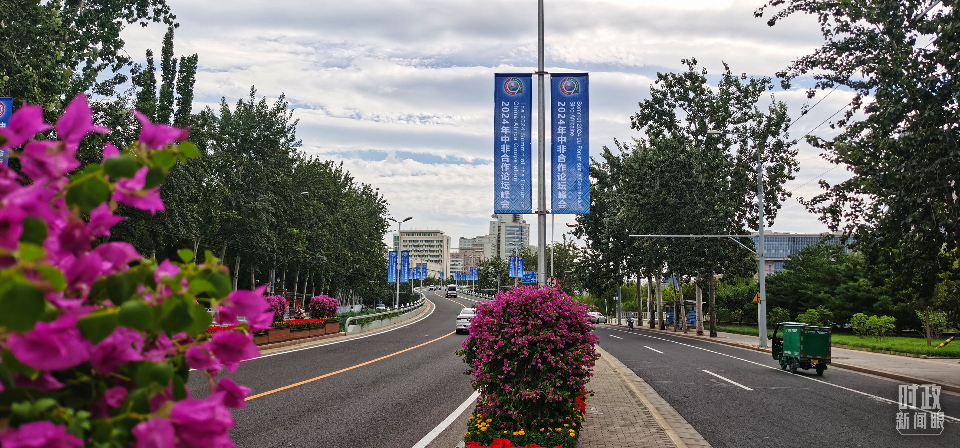 北京街頭中非合作論壇峰會氛圍濃厚。(總臺記者李晉拍攝)