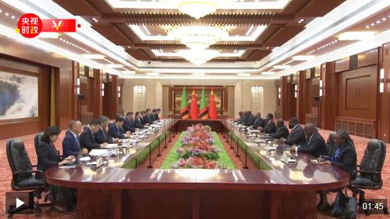 習近平指出,很高興再次同總統(tǒng)先生會面,剛才我們共同見證坦贊鐵路市場化激活合作文件簽署,意義重大。歡迎你出席中非合作論壇北京峰會。我們愿同包括贊比亞在內(nèi)的非方一道,推動這次峰會取得圓滿成功,為中贊、中非關(guān)系注入新動力。我愿同你一道,以這次峰會為契機,攜手推進各自國家現(xiàn)代化,為中贊友好關(guān)系新甲子開好頭、譜新篇。
