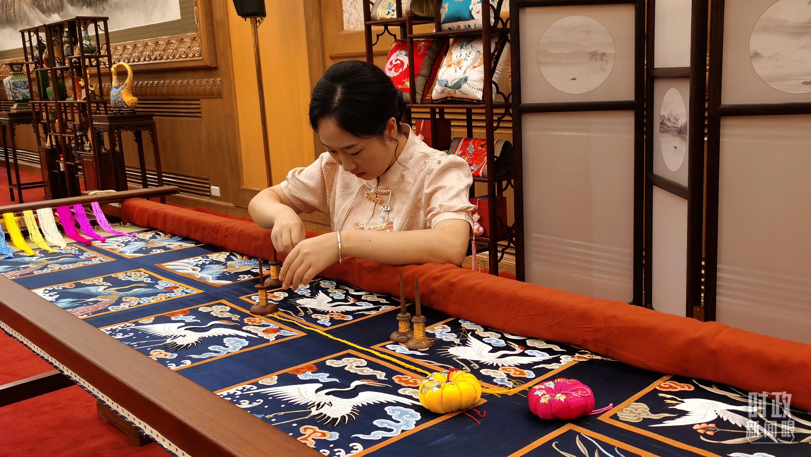 外賓休息室內的非遺展示。(總臺央視記者王曉東、郭鴻拍攝)