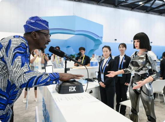 △中國(guó)剛剛在世界機(jī)器人大會(huì)上展出的智能語(yǔ)音機(jī)器人也在中非合作論壇上亮相