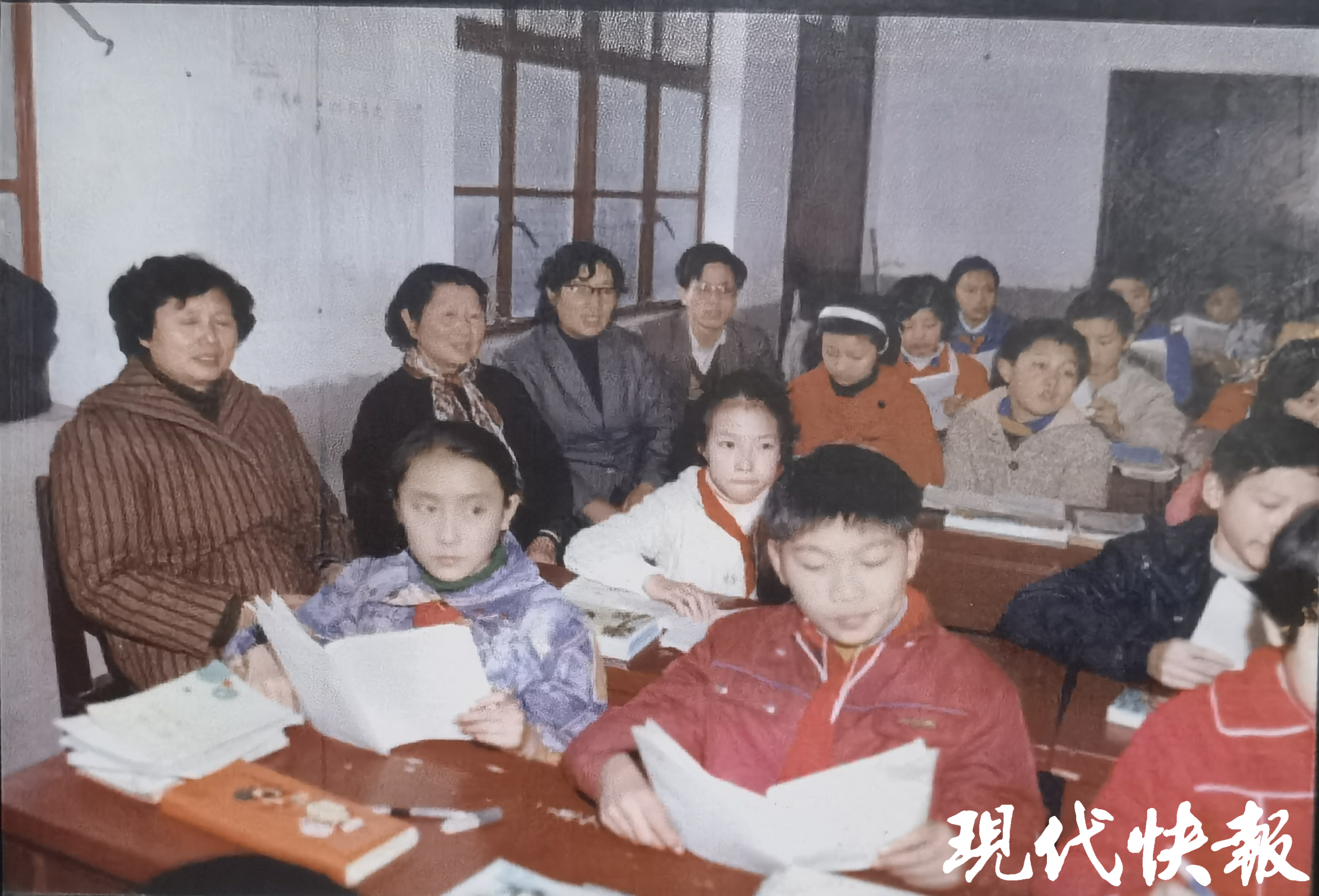 斯霞(左側(cè)二)老師在朱征(前排中)班級聽課