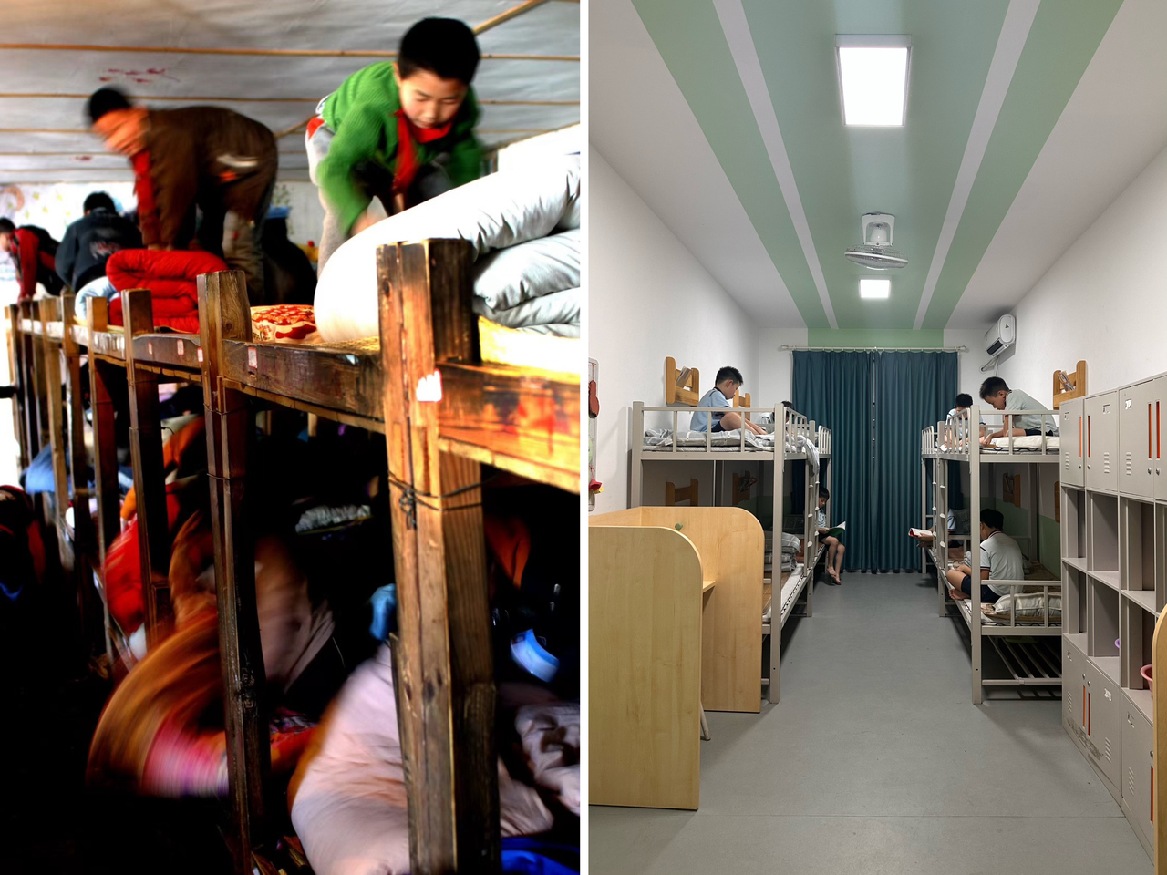 縉云縣東渡鎮(zhèn)長坑小學2005年以前的學生宿舍(左),以及現(xiàn)在的學生宿舍(右) 學校供圖