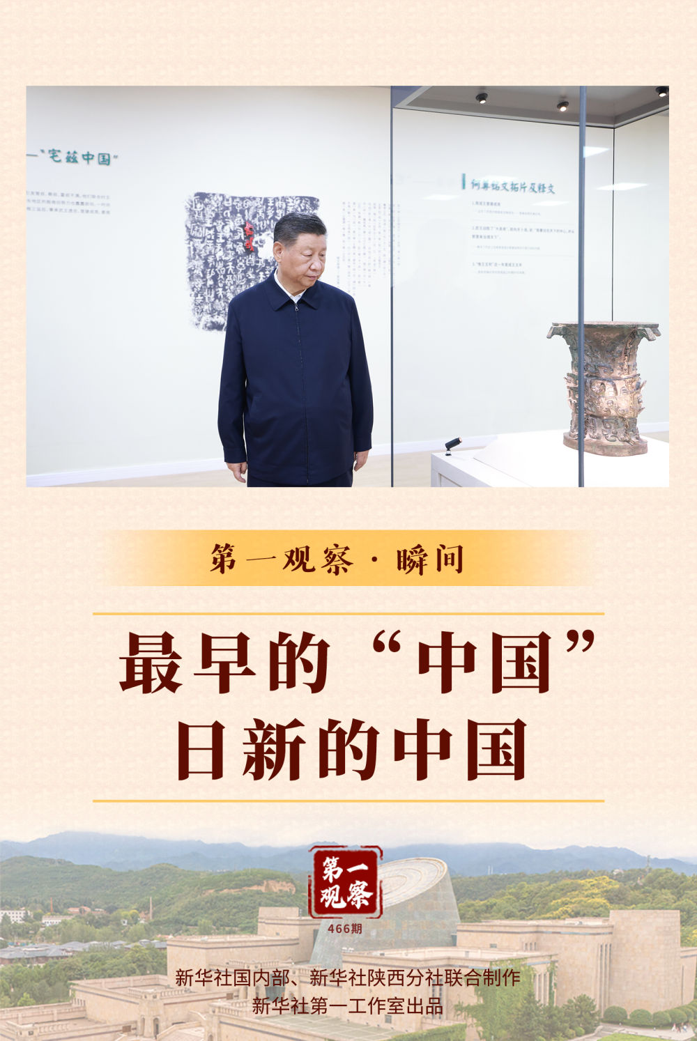新華社記者的鏡頭定格了這樣的瞬間:總書記在一件國(guó)寶級(jí)青銅器——何尊前駐足凝視,細(xì)致察看。
