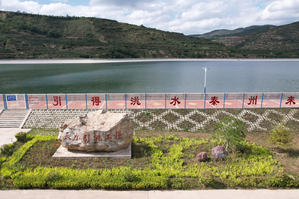 這是近日在天水市秦州區(qū)拍攝的天水市城區(qū)引洮供水工程楊家灣調(diào)蓄水池(無(wú)人機(jī)照片)。新華社記者 范培珅 攝
