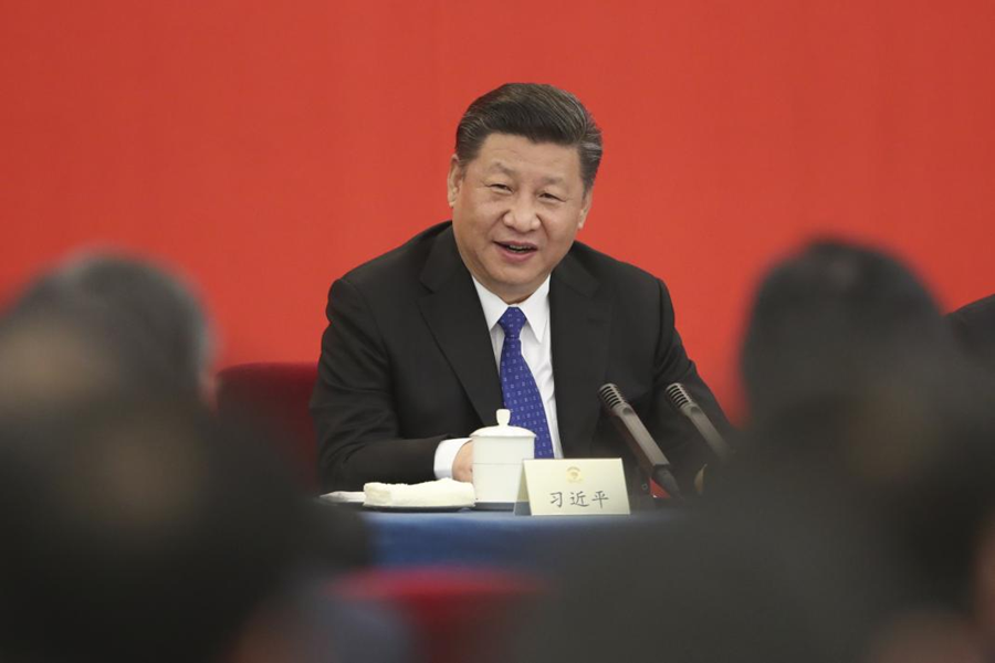 2018年3月4日下午,中共中央總書記、國(guó)家主席、中央軍委主席習(xí)近平看望參加全國(guó)政協(xié)十三屆一次會(huì)議的民盟、致公黨、無黨派人士、僑聯(lián)界委員,并參加聯(lián)組會(huì),聽取意見和建議。 新華社發(fā)(盛佳鵬 攝)