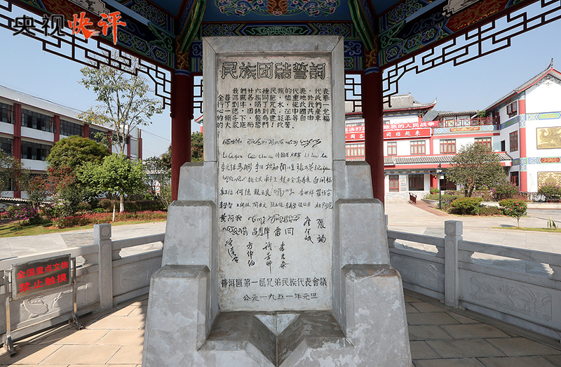 普洱民族團結(jié)誓詞碑被譽為“新中國民族團結(jié)第一碑”。1950年,云南普洱專區(qū)各族代表應(yīng)邀到北京參加新中國成立一周年慶祝活動,受到毛澤東等黨和國家領(lǐng)導(dǎo)人親切接見。1951年元旦,普洱專區(qū)各族群眾舉行盟誓大會,以少數(shù)民族的風(fēng)俗習(xí)慣立下誓詞碑。盟誓立碑后,各民族兄弟姐妹用實際行動踐行“一心一德跟黨走”的錚錚誓言,推動邊疆地區(qū)經(jīng)濟社會發(fā)展取得了歷史性成就,書寫了民族團結(jié)進步生動篇章。