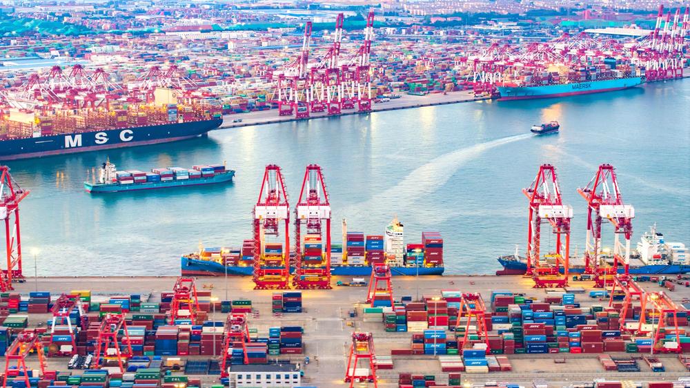 △2024年9月8日,山東港口青島港前灣集裝箱碼頭一派繁忙景象。
