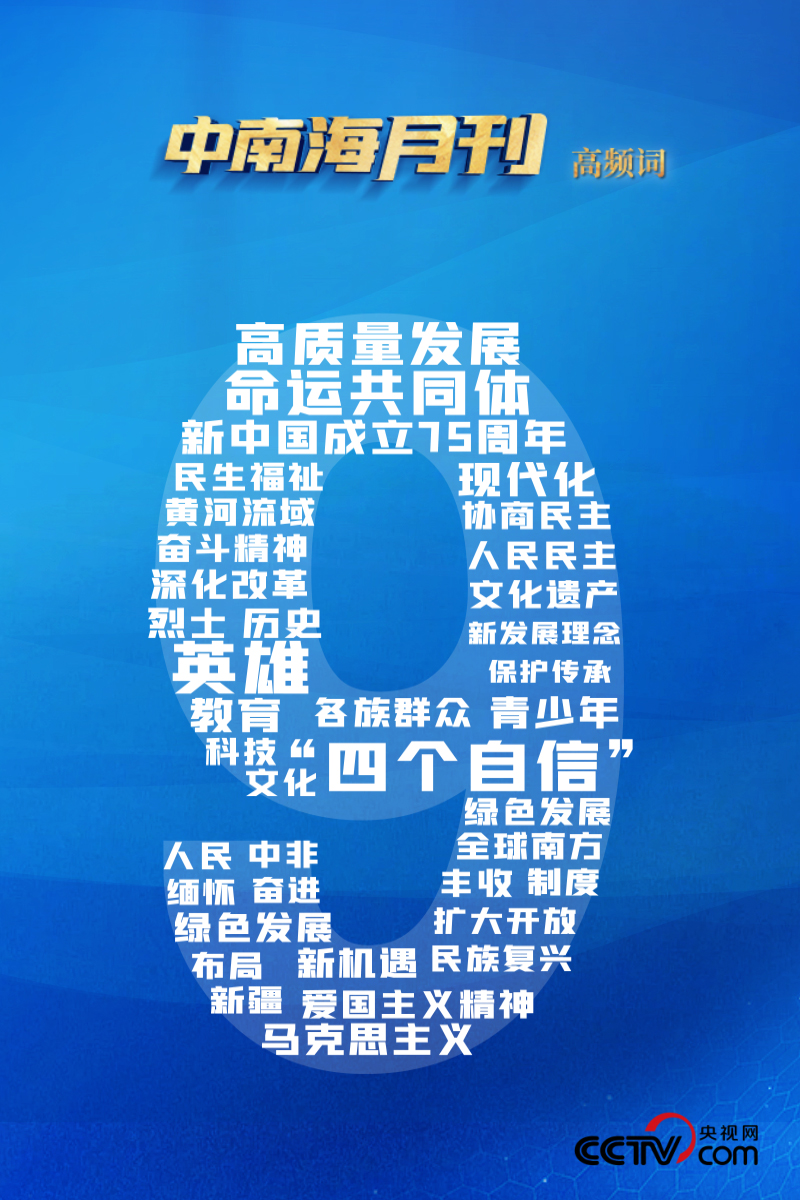 發(fā)展是解決中國(guó)所有問題的關(guān)鍵,也是中國(guó)共產(chǎn)黨執(zhí)政興國(guó)的第一要?jiǎng)?wù)。央視網(wǎng)I學(xué)習(xí)數(shù)據(jù)庫(kù)梳理分析習(xí)近平總書記9月重要講話,“人民”“教育”“高質(zhì)量發(fā)展”“黃河流域”等高頻詞貫穿在總書記治國(guó)理政思想的脈絡(luò)中。