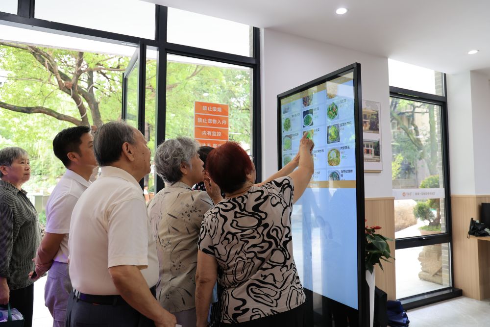 “陳老師,你今天不宜吃海鮮和豆制品,一會兒別忘了?!薄袄仙?,你少吃點(diǎn)重口味的菜,最近是不是血壓又高了?”幾位老人對著屏幕上的用餐建議,彼此提醒著。