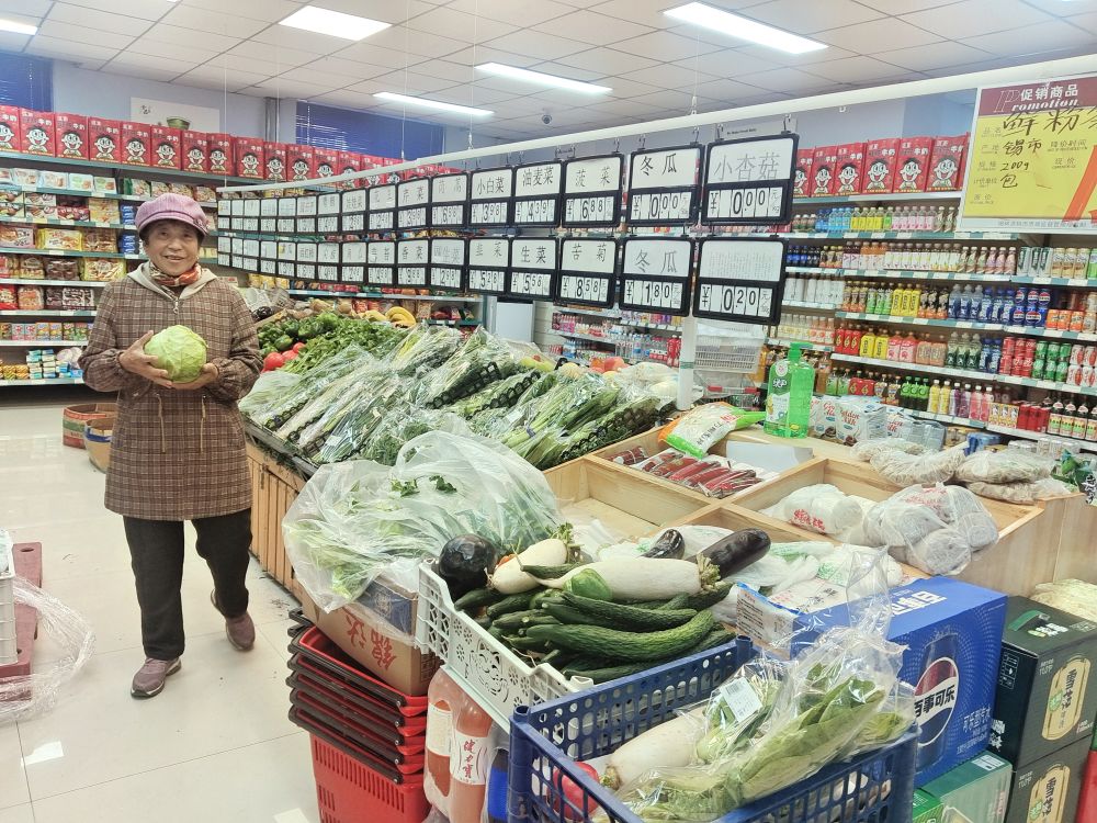 愛(ài)民社區(qū)的居民在民惠超市選購(gòu)生活用品。(谷國(guó)芬)