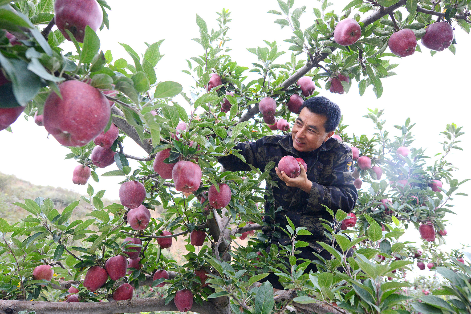 (果農(nóng)在采摘花牛蘋果)