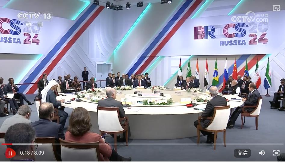 當(dāng)?shù)貢r(shí)間10月23日上午,金磚國(guó)家領(lǐng)導(dǎo)人第十六次會(huì)晤在喀山會(huì)展中心舉行。俄羅斯總統(tǒng)普京主持會(huì)晤。中國(guó)國(guó)家主席習(xí)近平、巴西總統(tǒng)盧拉(線上)、埃及總統(tǒng)塞西、埃塞俄比亞總理阿比、印度總理莫迪、伊朗總統(tǒng)佩澤希齊揚(yáng)、南非總統(tǒng)拉馬福薩、阿聯(lián)酋總統(tǒng)穆罕默德等出席。