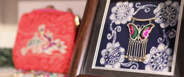 紅、綠、藍(lán)、黃……飛針走線五彩繽紛;繡、插、點(diǎn)、挑……制作手法千變?nèi)f化;龍鳳紋、魚鳥紋、蝴蝶紋……刺繡圖紋寓意豐富。