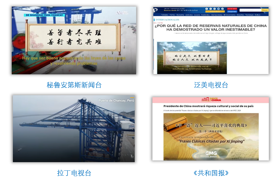在中國國家主席習(xí)近平應(yīng)秘魯共和國總統(tǒng)博魯阿爾特邀請,赴利馬出席亞太經(jīng)合組織第三十一次領(lǐng)導(dǎo)人非正式會議并對秘魯進(jìn)行國事訪問之際,由中國中央廣播電視總臺制作的《平“語”近人——習(xí)近平喜歡的典故》第三季(西班牙語版),將于當(dāng)?shù)貢r(shí)間11月14日起在秘魯國家廣播電視臺、秘魯電視聯(lián)播網(wǎng)、秘魯廣播節(jié)目集團(tuán)電視端等多平臺落地播出。當(dāng)?shù)囟嗉抑髁髅襟w對節(jié)目落播進(jìn)行預(yù)告,引發(fā)秘魯各界普遍期待和廣泛關(guān)注。