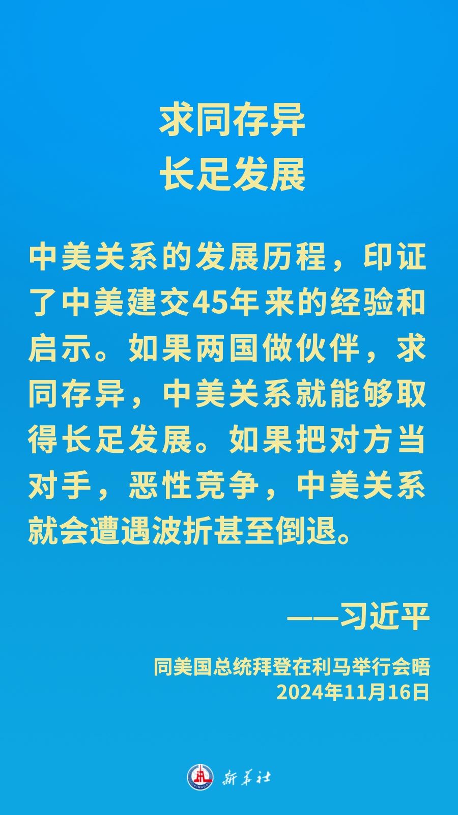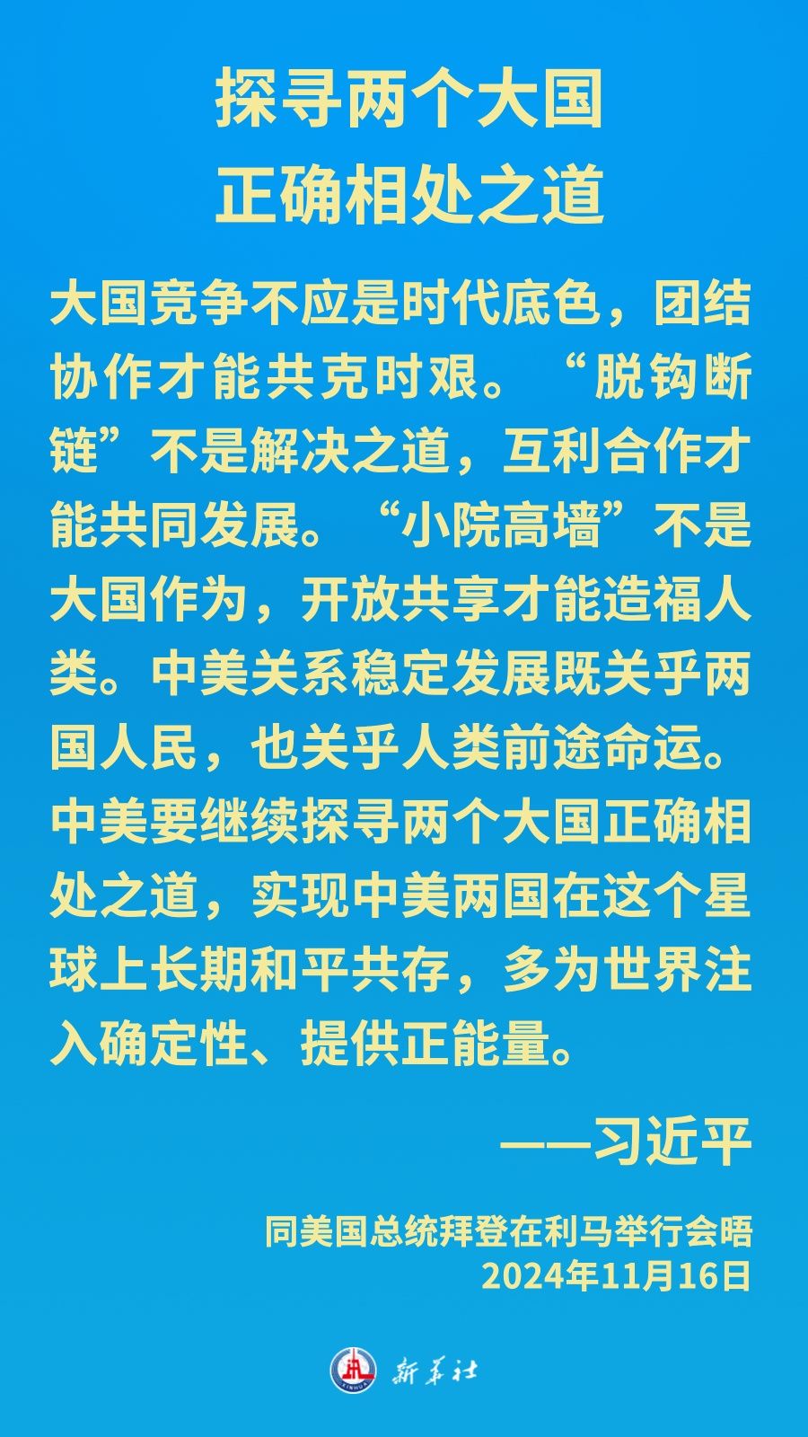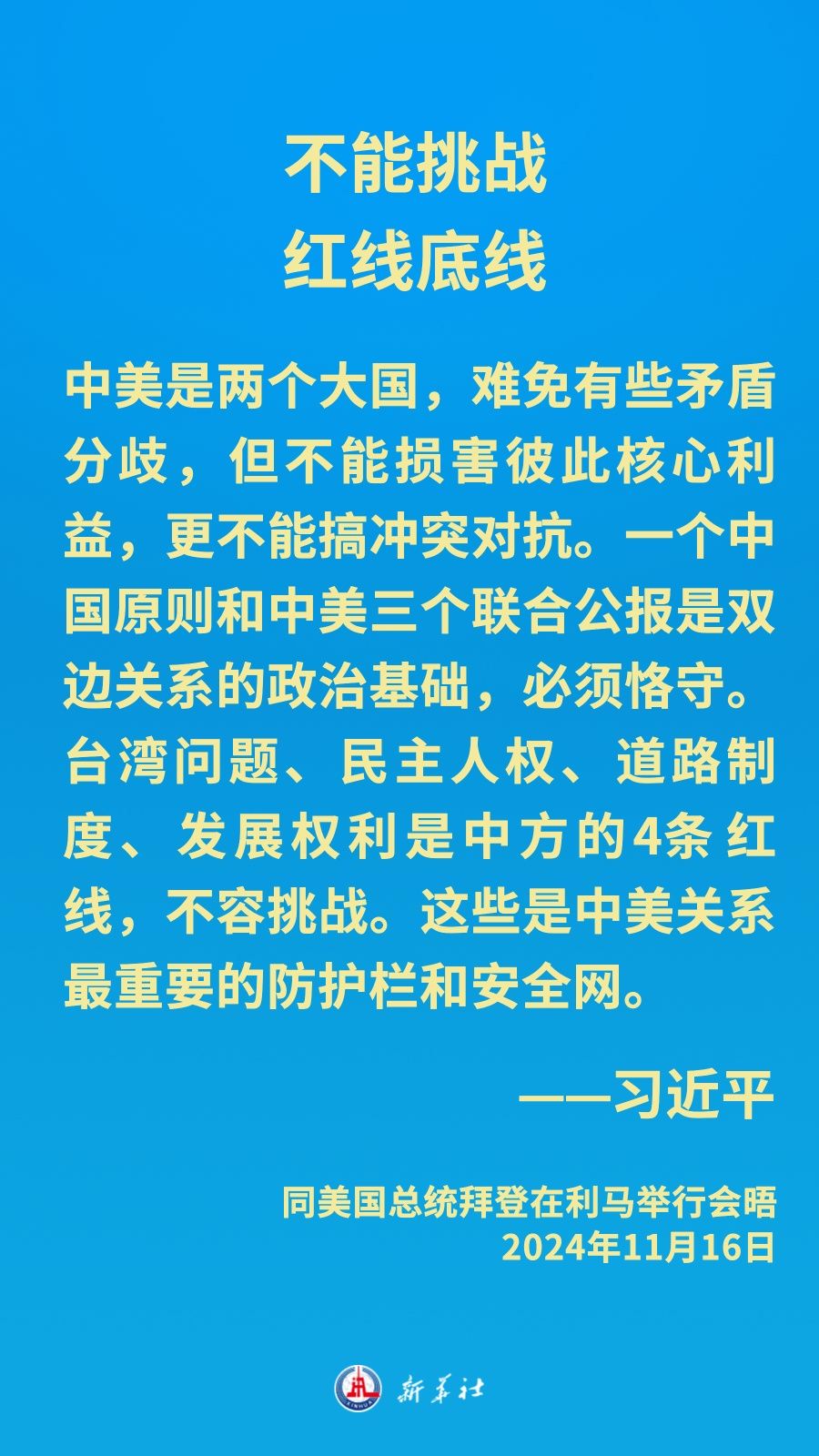 當(dāng)?shù)貢r間11月16日下午,習(xí)近平主席在秘魯利馬出席亞太經(jīng)合組織領(lǐng)導(dǎo)人非正式會議期間應(yīng)約同美國總統(tǒng)拜登舉行會晤。就中美關(guān)系發(fā)展,習(xí)近平主席闡明中方立場——