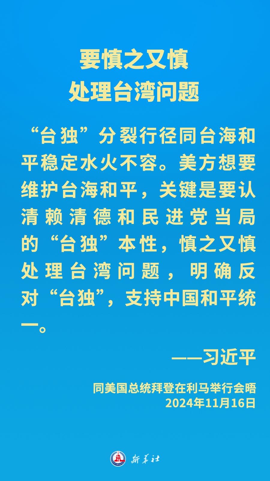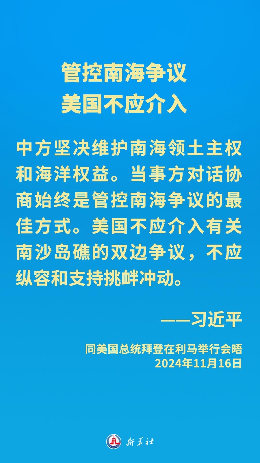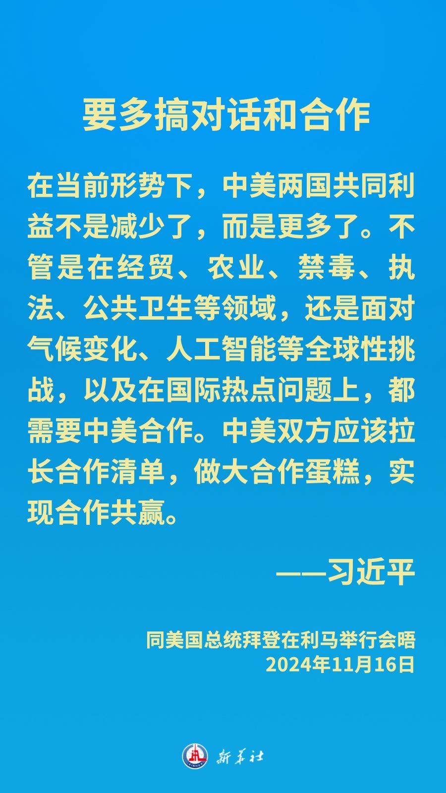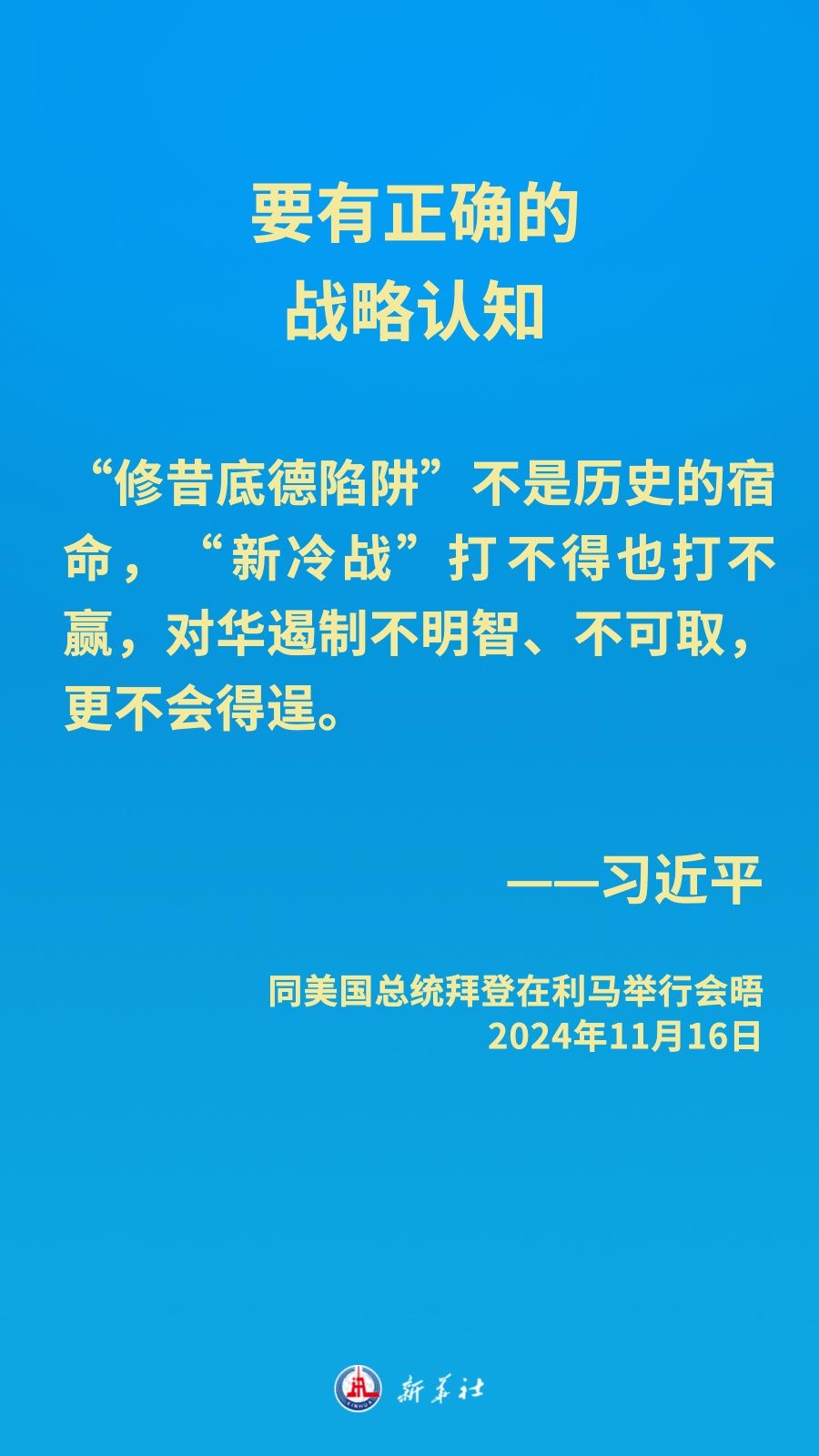 當(dāng)?shù)貢r間11月16日下午,習(xí)近平主席在秘魯利馬出席亞太經(jīng)合組織領(lǐng)導(dǎo)人非正式會議期間應(yīng)約同美國總統(tǒng)拜登舉行會晤。就中美關(guān)系發(fā)展,習(xí)近平主席闡明中方立場——
