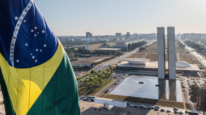 這是2024年7月16日在巴西首都巴西利亞拍攝的國(guó)會(huì)大廈(無(wú)人機(jī)照片)。 新華社記者 王天聰 攝