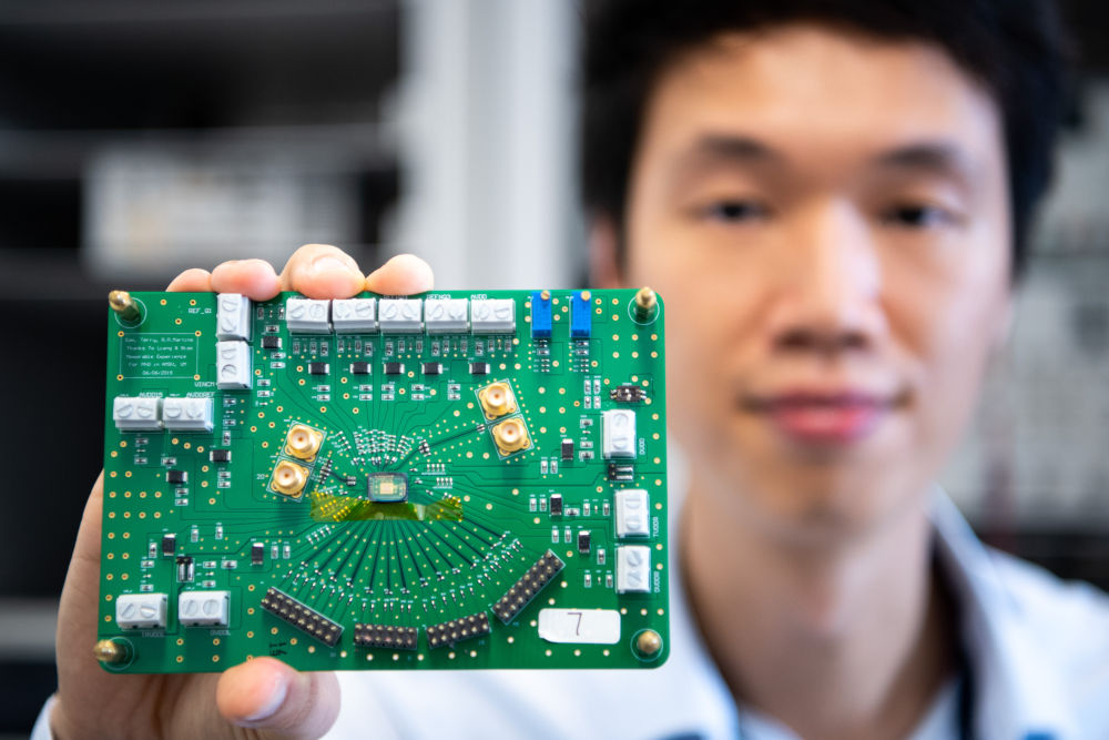 2019年11月1日,研究人員陳知行在模擬與混合信號超大規(guī)模集成電路國家重點(diǎn)實(shí)驗(yàn)室(澳門大學(xué))展示自主設(shè)計(jì)的模擬數(shù)字轉(zhuǎn)換器芯片。