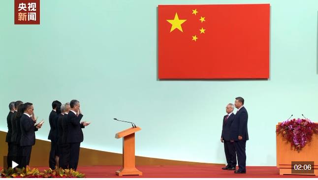 習(xí)近平主席監(jiān)誓,澳門特別行政區(qū)第六屆政府主要官員在岑浩輝帶領(lǐng)下宣誓就職。