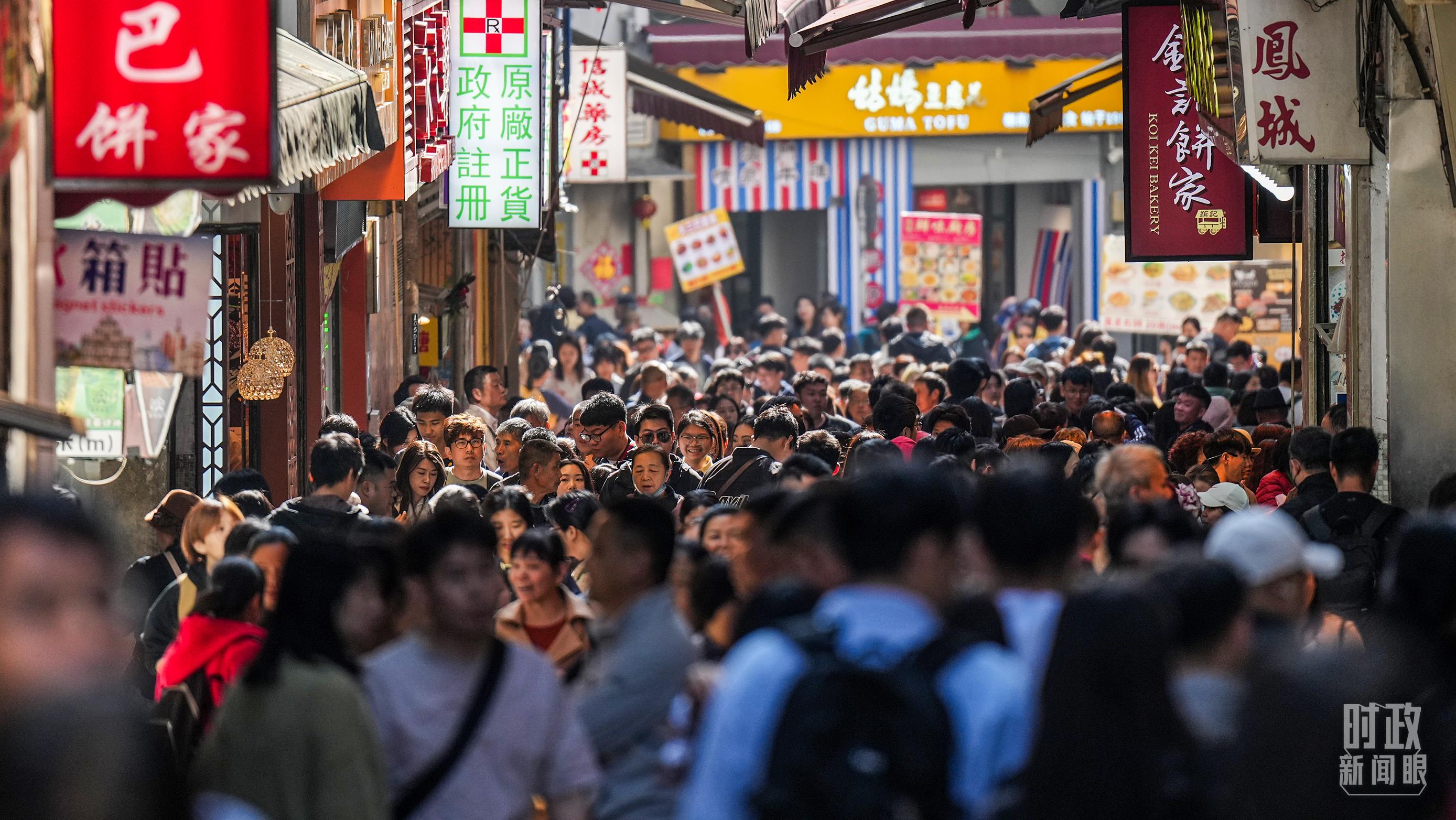 澳門街頭人流如織。(總臺(tái)記者李晉拍攝)