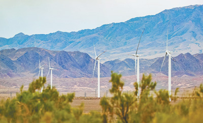 中國企業(yè)參與投資建設(shè)的哈薩克斯坦謝列克風(fēng)電場。新華社記者 白雪騏攝