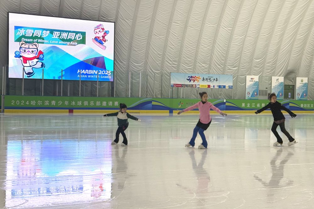 在位于哈爾濱市香坊區(qū)的名將氣膜冰上運動中心里,短道速滑、花樣滑冰、冰球等接連上演,每天客流達六七百人?!吧现疗哐先?、下至三歲孩童,今年上冰的人數(shù)明顯增多,較去年增加了約15%?!苯叹毭蠎c友說,預(yù)訂系統(tǒng)顯示,近一個月里市民公益滑冰和兒童青少年、中小學(xué)生上冰運動超過2萬人次。